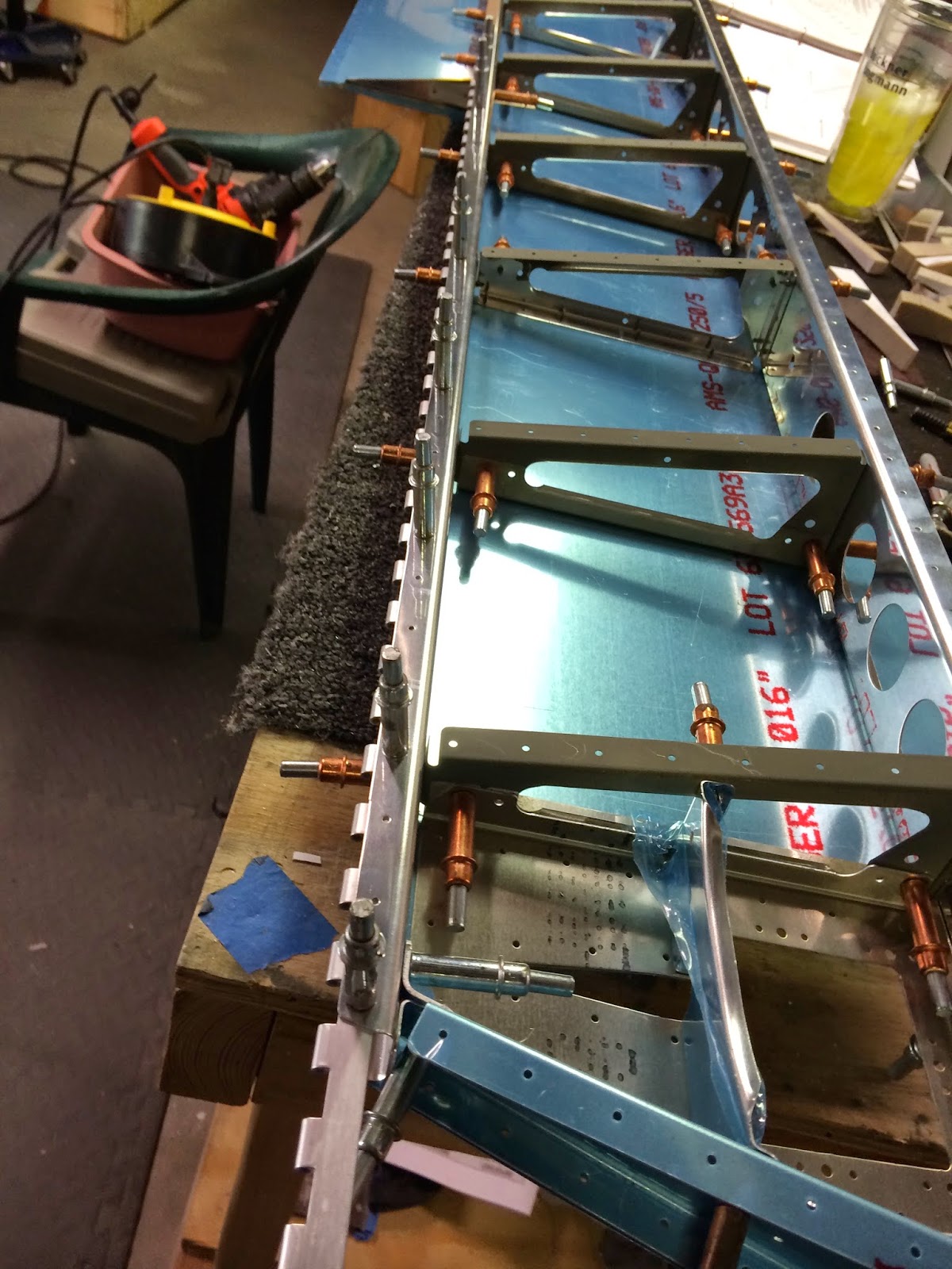 | Looks can be deceiving. The elevators go together for match drilling, then come apart for debarring, scuffing and priming. So I get to assemble them twice. |